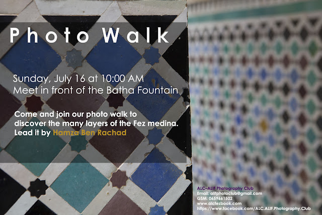 Come and join the photo walk to discover the many layers of the Fez medina. Lead it by Hamza Ben Rachad Photo Walk Sunday, July 16 at 10:00 AM. Meet in front of the Batha Fountain